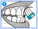 4.Cepille la superficie masticadora de sus dientes y muelas colocando las cerdas en posición vertical. Realice movimientos cortos hacia atrás y adelante.